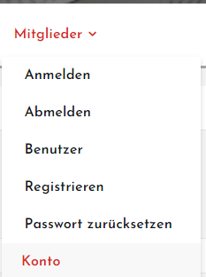 Änderungen der Zugangsdaten sind über das Menü Mitglieder möglich (inkl. Änderung des Passworts)